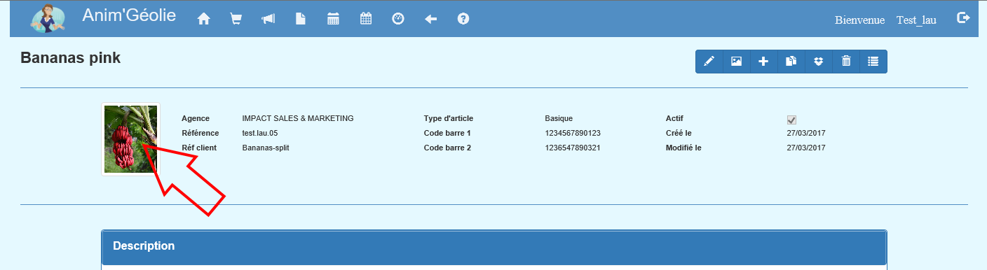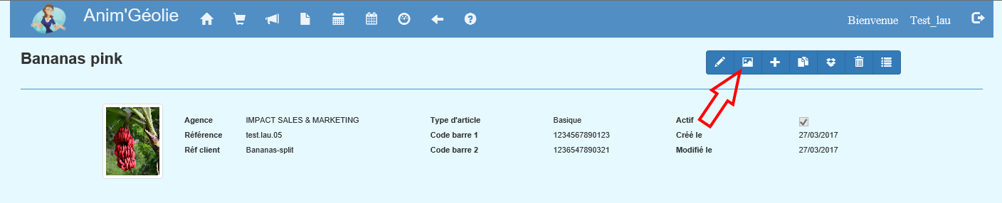 Pour gérer les images d'un article/Kit, affichez le détail de l'article puis cliquez sur le bouton Image :