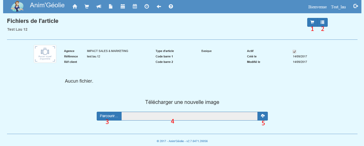 Pour finaliser l'ajout, cliquez sur le bouton de téléchargement (5) sur l'écran des fichiers de l'article.