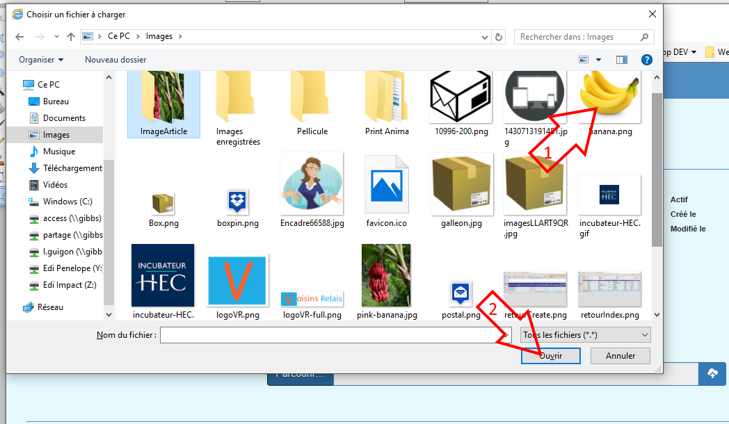 Sélectionnez votre image dans la fenêtre d'ouverture de fichiers puis cliquez sur le bouton "ouvrir" de cettte même fenêtre.