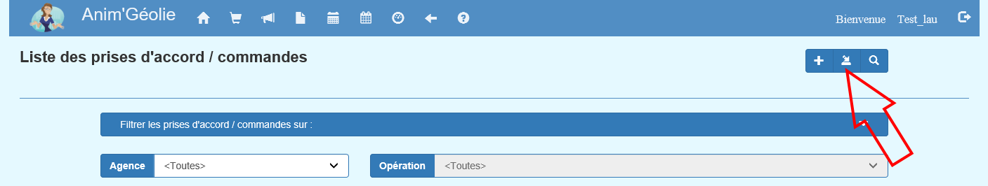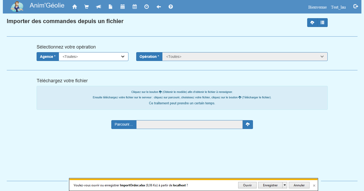 Pour importer un fichier de commandes, cliquez sur le bouton "Importer un fichier de commandes" dans l'index des commandes :