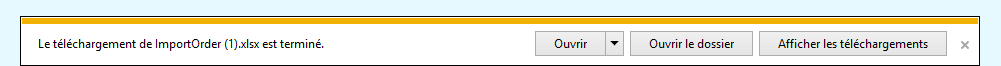 Vous trouverez dans votre explorateur de fichiers le document téléchargé (ImportOrder.xlsx).
